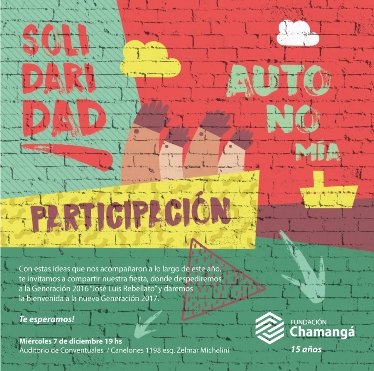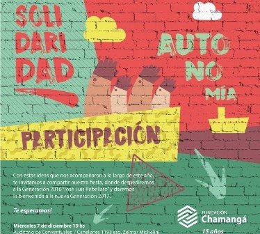 Fue una noche muy amena donde todos los amigos, colaboradores, tutores y ex becarios de Chamangá le dieron la bienvenida a la nueva Generación 2017 “Pedro Figari” y luego se realizó la despedida de la Generación 2016 “José Luis Rebellato”.