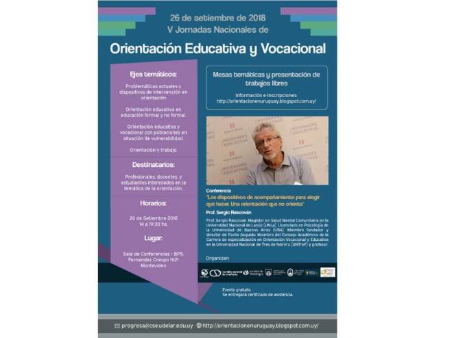 Organizada por el Programa de Respaldo al Aprendizaje (Progresa UdelaR), Programa Uruguay Estudia, Área de Orientación Educativa y Vocacional (Universidad Católica del Uruguay) y Maestría en Orientación Educativa (UCU).