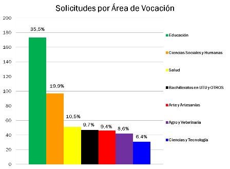 En cuanto a las distintas áreas de vocación, el área vinculada a la Educación fue la más numerosa al solicitar la beca (35,5%), seguida por el área de las Ciencias Sociales y Humanas (19,9%) y el área de la Salud (10,5%).