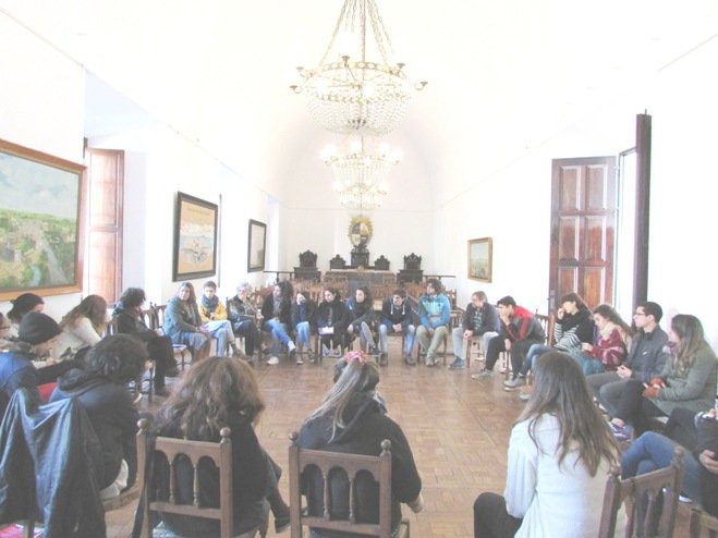 Además de hacer una recorrida al Cabildo, luego en la Sala de los Constituyentes en la planta alta se desarrolló la reunión cuya temática giró en torno a los Medios de Comunicación, la construcción de opinión pública y la mirada crítica de la construcción de ciudadanía.