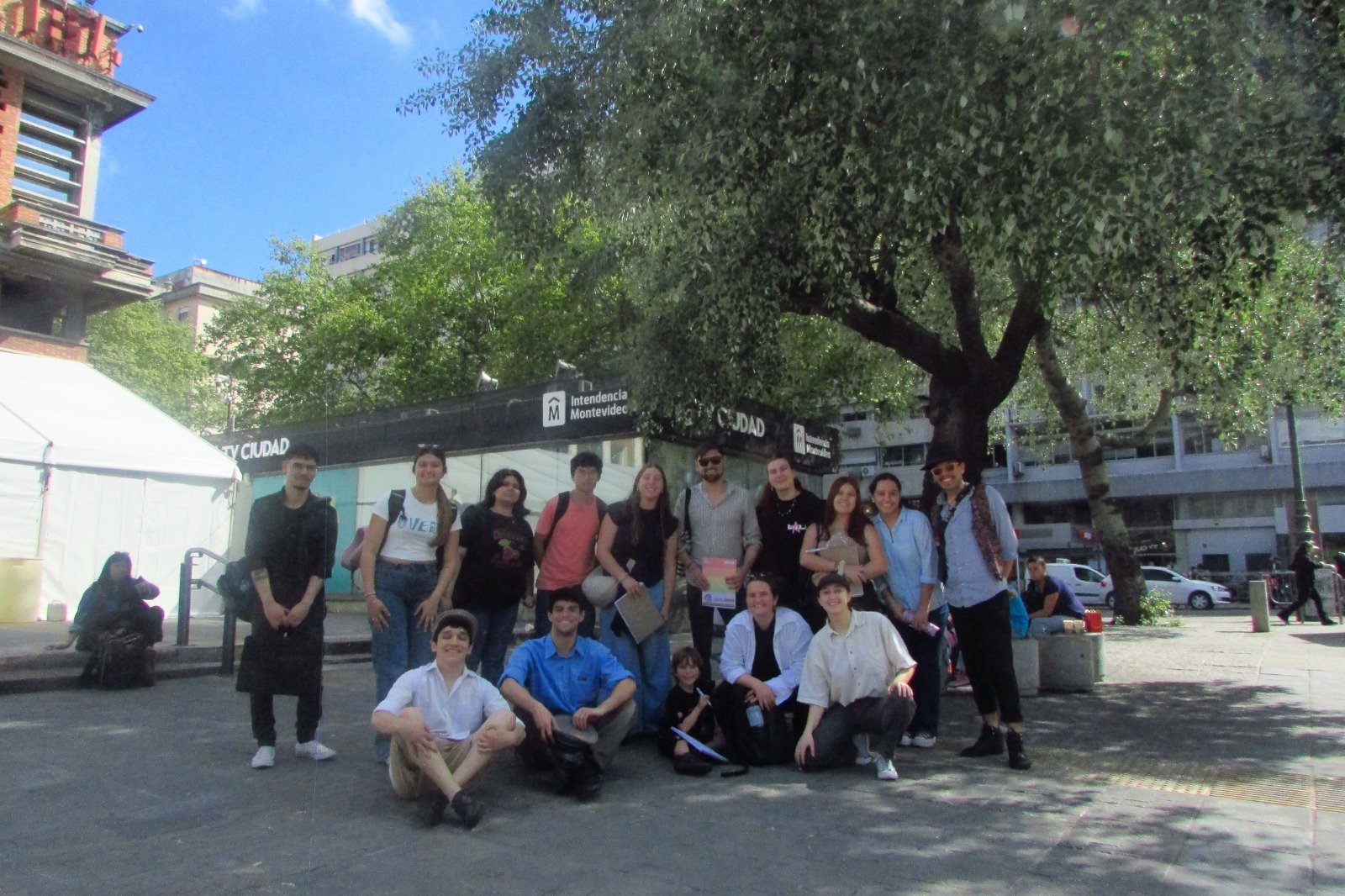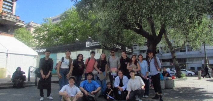 Posteriormente nos acercamos a la Intendencia de Montevideo para subirnos a un ómnibus de UCOT que nos llevó por un recorrido por cooperativas, teatralizado por el grupo de teatro donde participa Octavio, becario 2025, llamado “Teatro de Vidrio” y musicalizo por Fabricio Edwin.