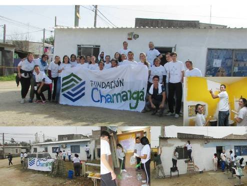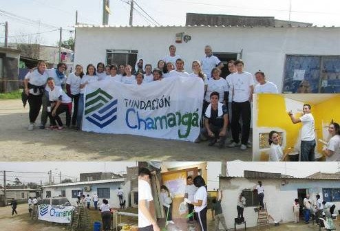 El sábado 6 de mayo, vecinos y funcionarios de la policlínica de ASSE “Los Reyes” (Casavalle) se acercaron a colaborar con la iniciativa de los becarios de Fundación Chamangá en la pintada y limpieza de obra, luego de que la brigada solidaria del SUNCA había colocado el techo.